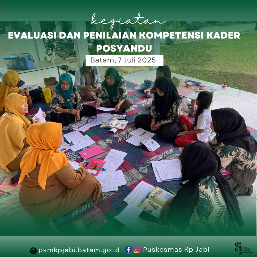 Pkmkpjabi – UPT. Puskesmas Kampung Jabi terus berupaya melakukan peningkatan kompetensi kepada kader posyandu di Wilayah Kerja UPT. Puskesmas Kampung Jabi yang belum mengikuti kegiatan penilaian kompetensi kader sebanyak 41 kader posyandu dari 7 posyandu ( Posyandu Permata Bandara, Posyandu Kampung Tengah, Posyandu Nongsa Asri, Posyandu Kampung Melayu RW.II, Posyandu Taman Yasmin, Posyandu Citramas dan Posyandu Kampung Panglong.